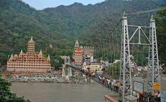 Rishikesh is a city in Uttarakhand, India, located in the Himalayan foothills next to the Ganges River, which is considered sacred. The city is famous for its focus on yoga and meditation, with many temples and ashrams along the river, especially around Swarg Ashram, a peaceful area that is alcohol-free, vegetarian, and free of traffic. The Triveni Ghat, where three rivers meet, is a holy spot for bathing and spiritual cleansing. Every evening, a ritual called Ganga aarti is held, where oil lamps are floated on the river. Further upstream, pedestrian bridges like Lakshman Jhula and Ram Jhula connect both sides of the river. Near Lakshman Jhula, the 13-story Trayambakeshwar temple stands tall. Rishikesh is also known for its yoga schools, and visitors can enjoy activities like trekking, kayaking, and white-water rafting.